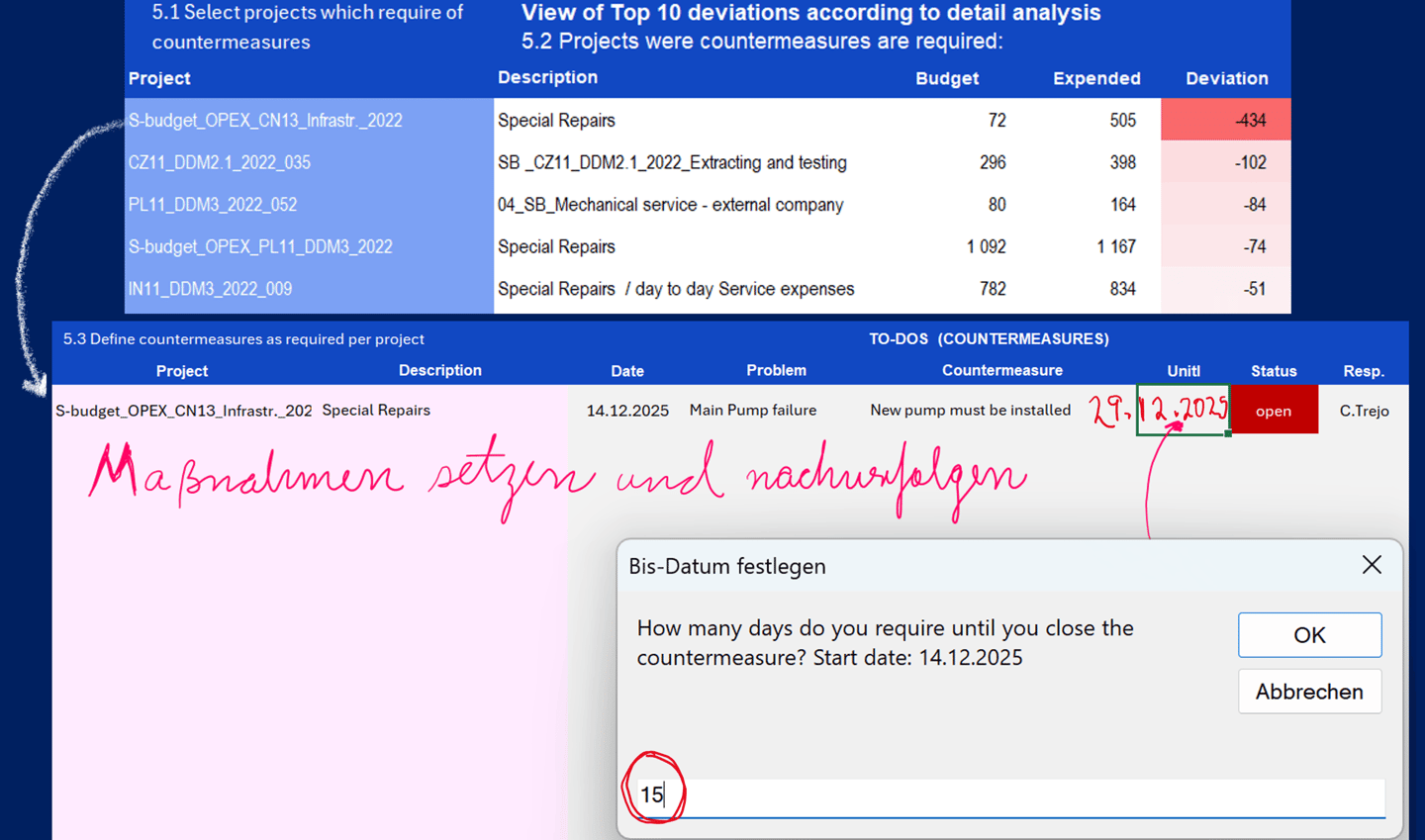 Aus diesen Bausteinen entstand ein einfaches, aber hochwirksames Steuerungssystem für das OPEX-Maintenance-Sonderbudget.