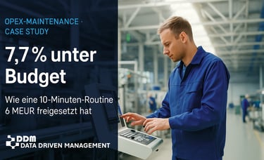 Diese Business Study erzählt die Geschichte, wie aus einem Sonderbudget ein Steuerungshebel wurde – mit klaren Routinen, einem schlanken Excel/VBA-Tool und einem gemeinsamen Fokus im Maßnahmenmanagement. Das Ergebnis: 6 Millionen Euro Einsparungen in einem Jahr und eine Ausgabenkurve, die nicht länger dem Zufall überlassen ist.
