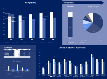 Reality Check Budget: Plan–Ist–Forecast (inkl. CAPEX/OPEX) übereinanderlegen, Abweichungen und Hebel sichtbar machen.