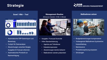 39,8 MEUR Sonderbudget lief aus dem Ruder. Mit einer 10-Min-Management-Routine je Standort und einem schlanken Excel/VBA-Tool wurden Abweichungen in Minuten sichtbar, Maßnahmen konsequent verfolgt.